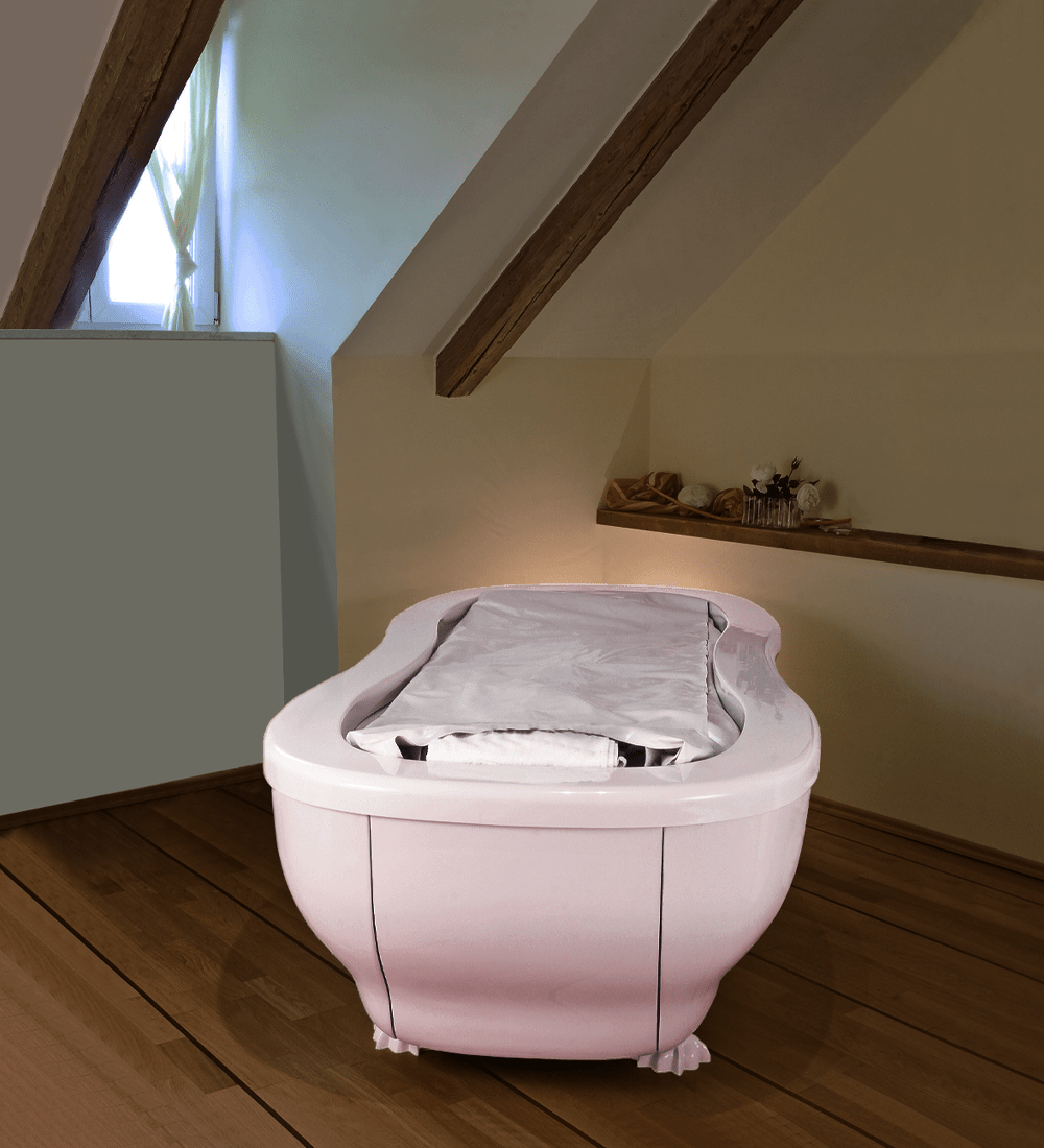 • Ezután a lebegtető technológia működésbe lép: a vendéget a meleg vízzel telt ágyba süllyeszti a rendszer – anélkül, hogy a bőr a vízzel érintkezne.